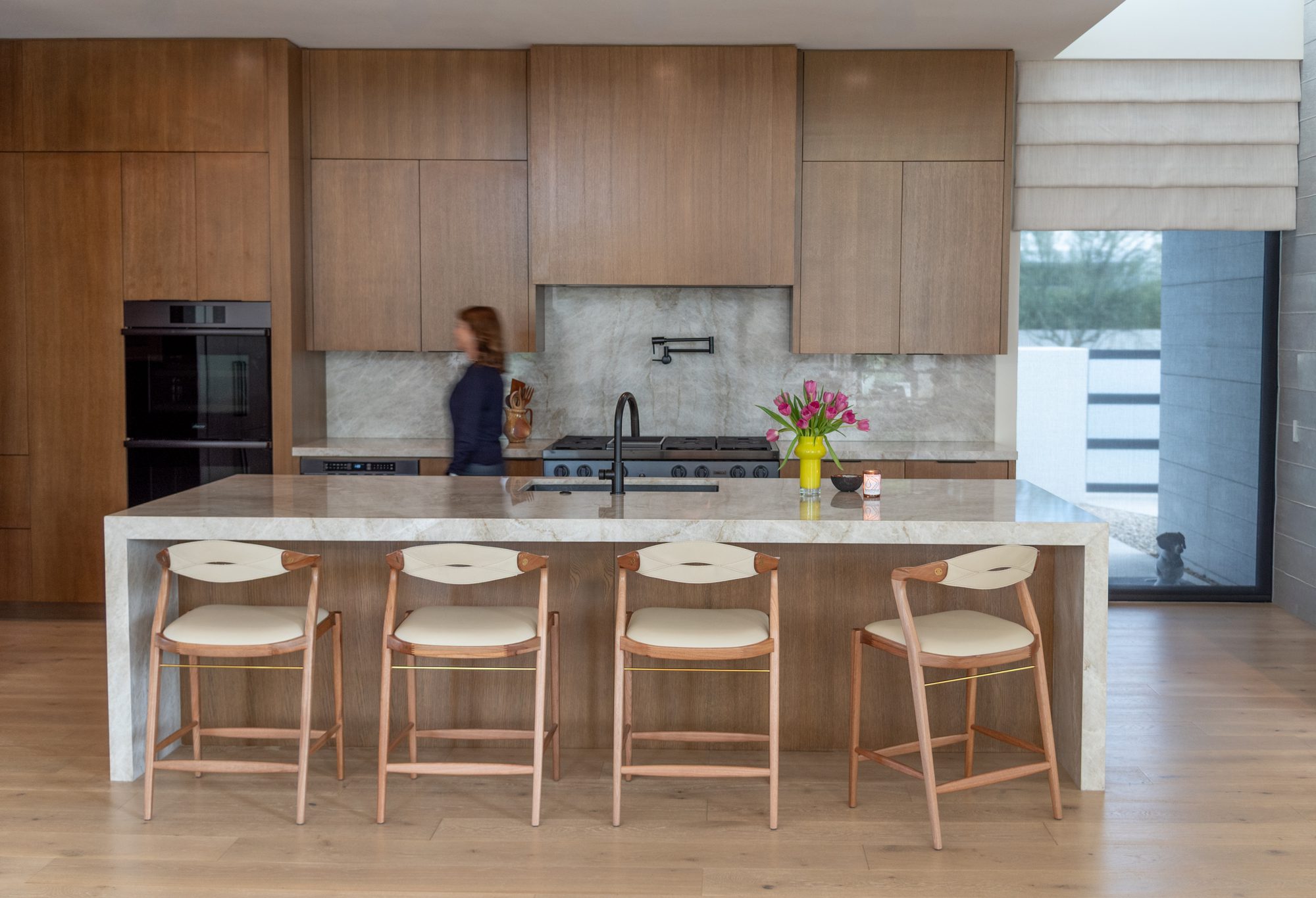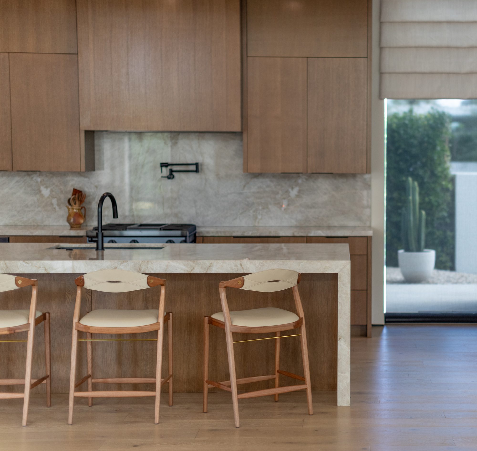 A Banqueta Angela impressiona por sua estética única, que harmoniza uma tríade de materiais nobres: a solidez da madeira, a textura acolhedora do revestimento e toques metálicos que conferem modernidade e sofisticação. Projetada para se adaptar a diversos biotipos, a peça oferece estabilidade e bem-estar que superam as expectativas. Seus braço são a síntese da funcionalidade: curtos o suficiente para apoiar, mas discretos para garantir total facilidade de uso.