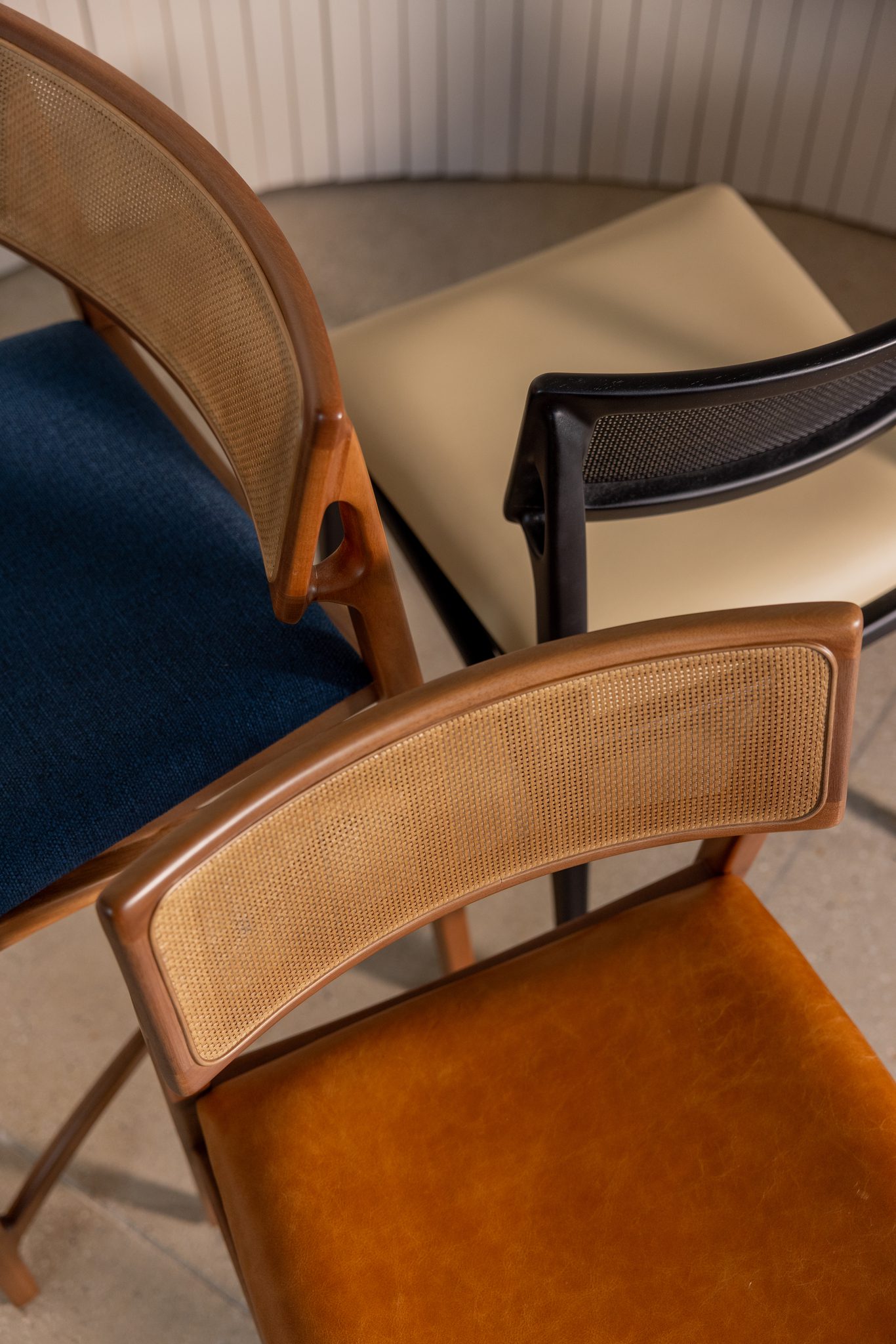 A cadeira Laura é a serenidade de um jardim traduzida em design. Inspirada na arquitetura botânica, sua estrutura evoca a beleza orgânica da natureza. O encosto parece brotar das pernas traseiras, que se assemelham a galhos. Unindo a peça, um arco delicado simula ramos que se alongam em busca do sol. Laura cultiva a atmosfera do campo, independentemente do clima. Uma peça que transforma qualquer ambiente em um refúgio de elegância natural.