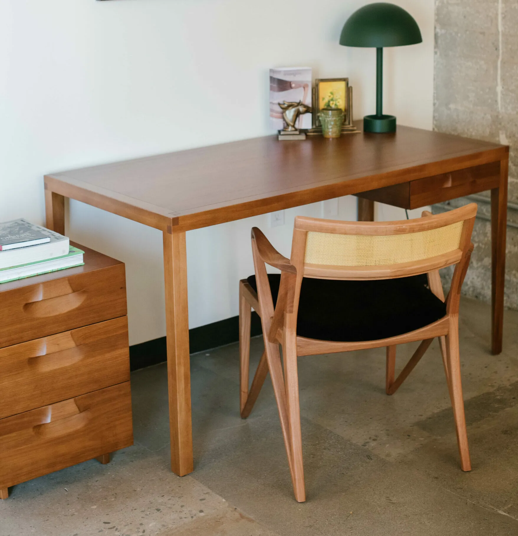 Com estrutura de madeira maciça, a Cadeira Olivia possui assento estofado e encosto em tela ou madeira maciça, adaptando-se a diferentes estilos de decoração.