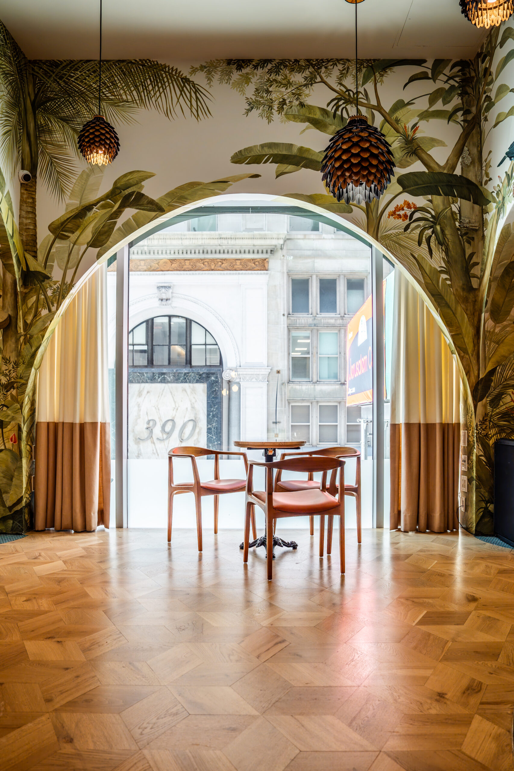 Assim, Zion dedicou 300 horas para pintar à mão, nas paredes, a flora e a fauna do litoral sul do Rio de Janeiro. “Guarás-vermelhos, micos-leões-dourados, canários cantando para um violão que brota de uma árvore — uma fusão de natureza e música que celebra a alegria de ser brasileiro”, disse Jeff. A equipe de Mario chama a obra de “Uma floresta que balança ao ritmo da Bossa Nova”.