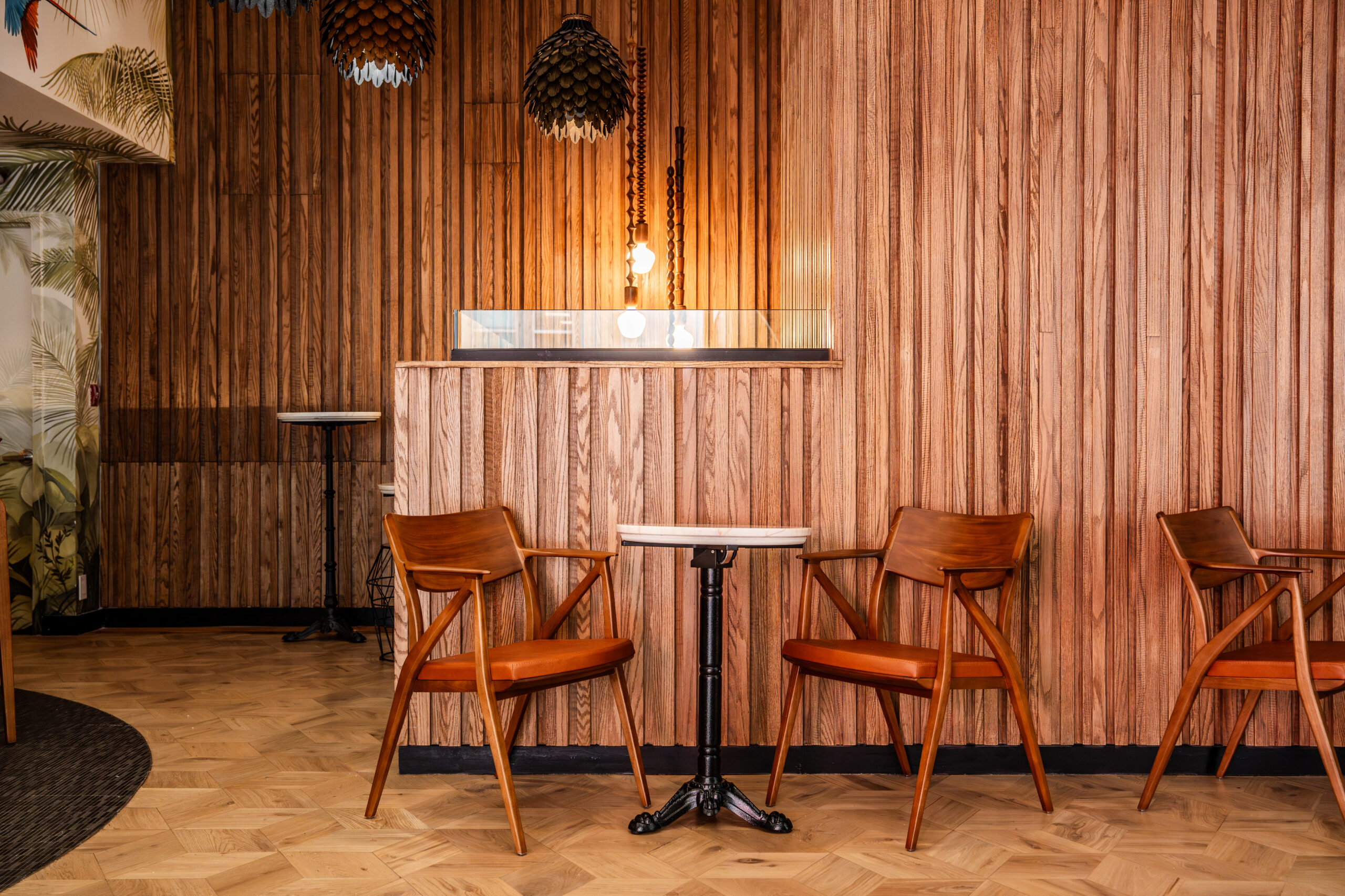 Mario há muito sonhava com os assentos perfeitos para definir o espaço. Como um grande admirador do trabalho de Aristeu Pires, o empresário queria mobiliar o bar com as peças do designer. “O design de Aristeu é a simplicidade encontrando a sofisticação. Curvilíneo, charmoso e convidativo”, diz Mario. “As peças me ajudaram a criar uma atmosfera sensorial e emocional que conecta os clientes à minha cultura brasileira. Um pedaço do Brasil em Nova York.”