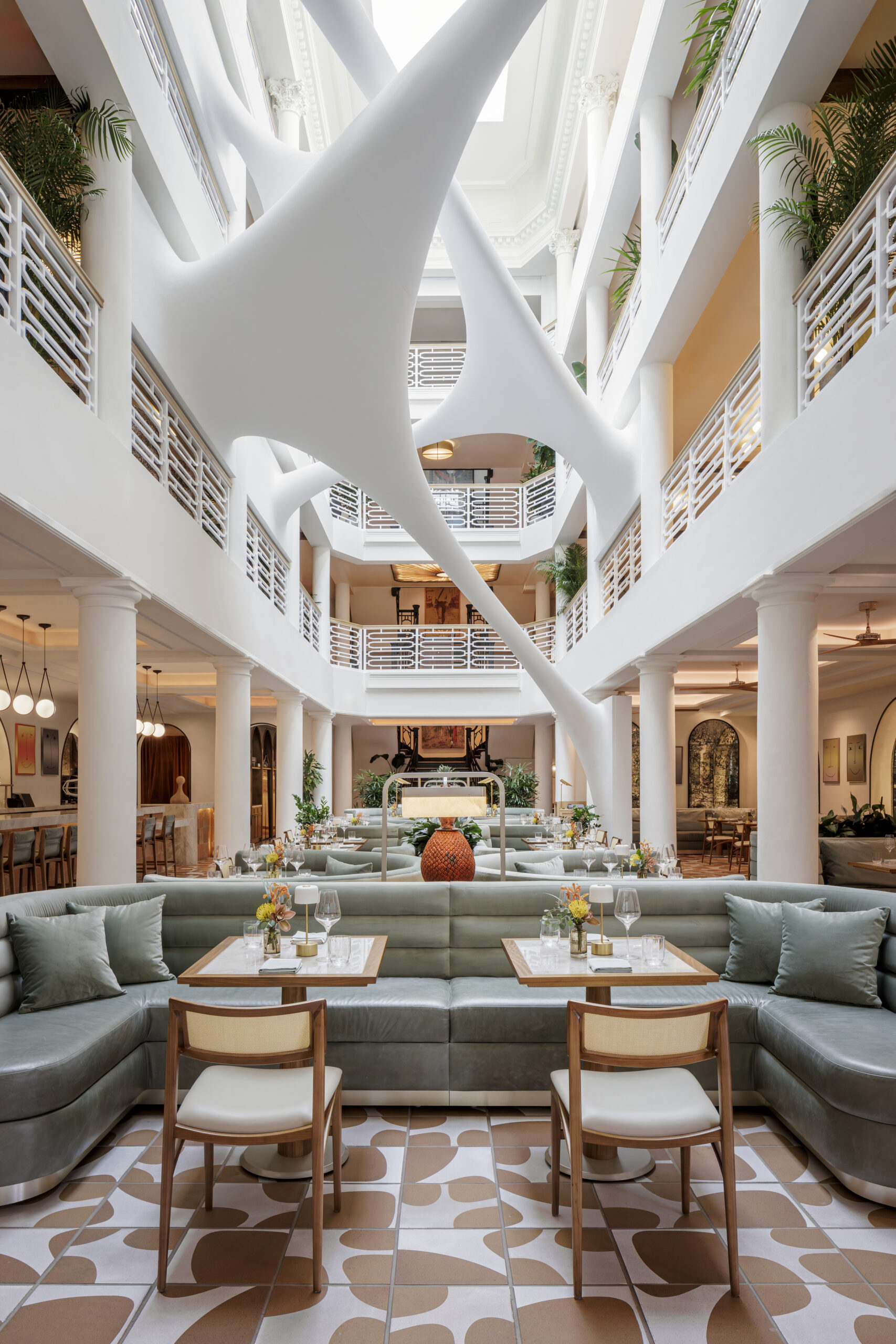 Brady Wood, fundador da WoodHouse, reuniu uma equipe que olharia além do passado célebre do edifício para enxergar seu vibrante potencial. O escritório ICRAVE, colaborador frequente, desenvolveu um plano diretor para o interior de quatro andares, que inclui o restaurante Elastika, batizado em homenagem à escultura homônima de Zaha Hadid instalada no átrio em 2005; um clube privativo para membros; um espaço de trabalho; e um hotel boutique. Brady também trouxe a renomada empresa de design de hospitalidade Studio-Collective para projetar os quartos do hotel e partes do clube.
